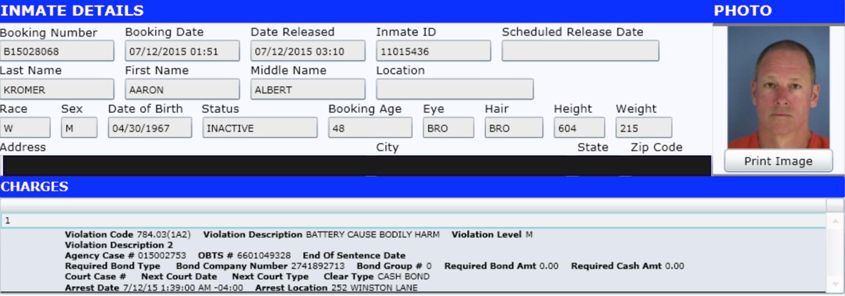 @RapSheet tweeted: Here is the information from the Walton County (Fla.) Jail on #Bills OL coach Aaron Kromer’s arrest and charge